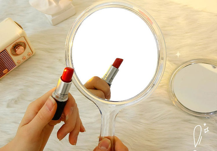 1x Aesthetic handheld double sided mirror with acrylic frame. One side has a normal mirror and the other has a magnified mirror. Size 11.5*21cm